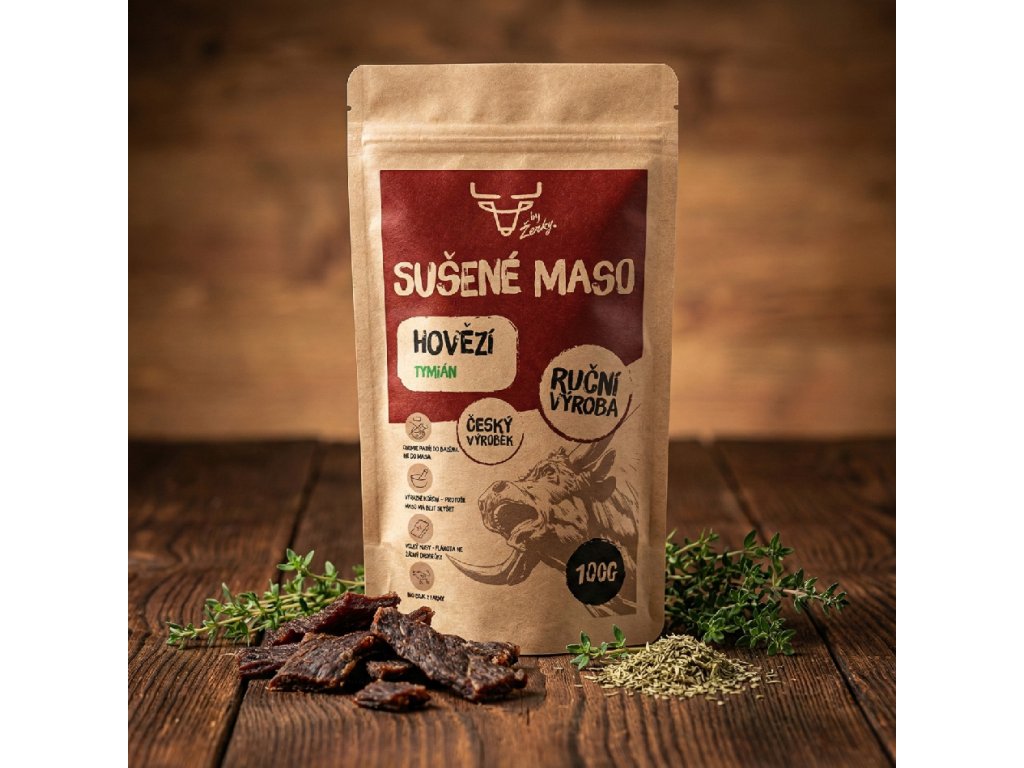 Naše hovězí sušené maso je výsledkem kombinace tradice a kvality. Používáme pouze nejlepší kusy hovězího masa, které jsou pečlivě vybrány a ručně připravovány. Každý kousek je jemně kořeněný směsí vybraných bylin a koření, aby se dosáhlo dokonalé harmonie chutí. Poté je maso pomalu sušeno, což mu dodává ta správná textura a konzistenci. S balením po 50 nebo 100 gramech můžete mít vždy po ruce tu správnou dávku pro své chuťové buňky.
